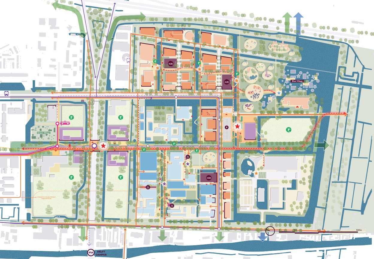 The area vision builds on the Campus Vision 2040. A key ambition is to strengthen the campus’s connection with Delft and the wider region. Campus South will develop into an accessible, urban and sustainable area with: