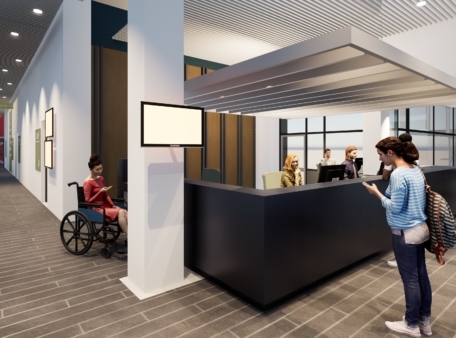 De Service Desk wordt verplaatst naar een zichtbare, centrale plek, goed bereikbaar vanaf beide entrees. Hierdoor kunnen bezoekers sneller en makkelijker geholpen worden.